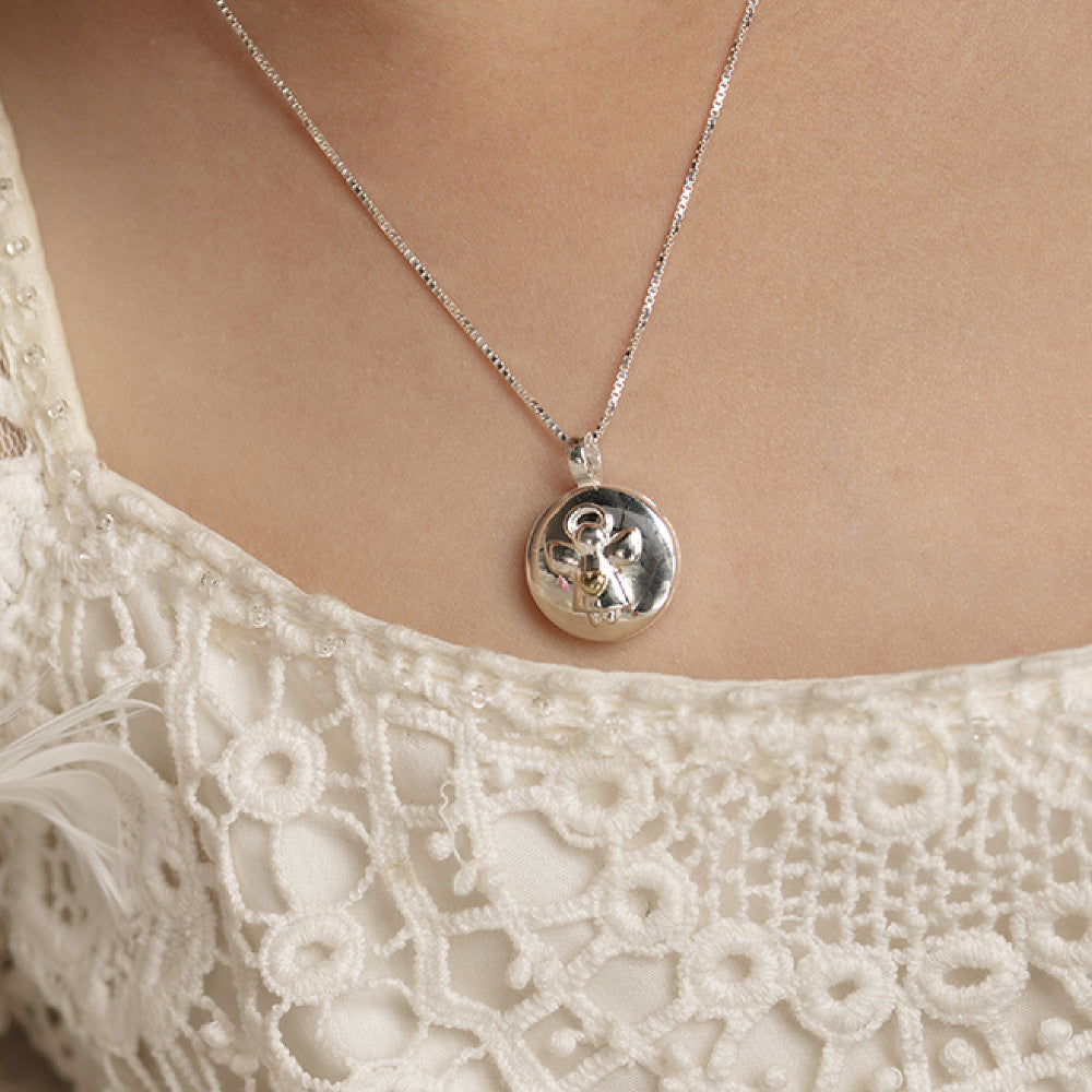 Two tone angel with a yellow gold plated heart in 925 sterling silver pendant. Navya London includes a variety of designs from everlasting classic pieces to those with a modern day twist. Our 925 sterling silver allows for comfortable wear, especially for those with sensitive skin. Our silver products are created by applying traditional processes to contemporary designs inspiration from around the world, ensuring high quality craftsmanship and materials without losing the edge. A perfect gift for yourself or that special person in your life. Your jewel is presented in a beautiful gift box.