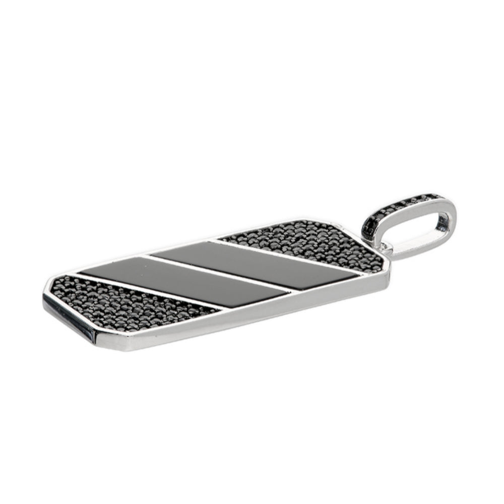 Dog Tag with Black Cubic Zirconia Diagonal Stripes