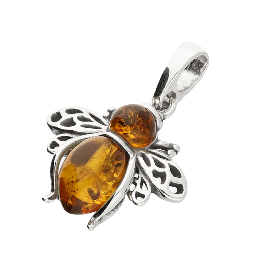 Cognac amber bee with 925 sterling silver pendant. Navya London includes a variety of designs from everlasting classic pieces to those with a modern day twist. Our 925 sterling silver allows for comfortable wear, especially for those with sensitive skin. Our silver products are created by applying traditional processes to contemporary designs inspiration from around the world, ensuring high quality craftsmanship and materials without losing the edge. A perfect gift for yourself or that special person in your life. Your jewel is presented in a beautiful gift box.