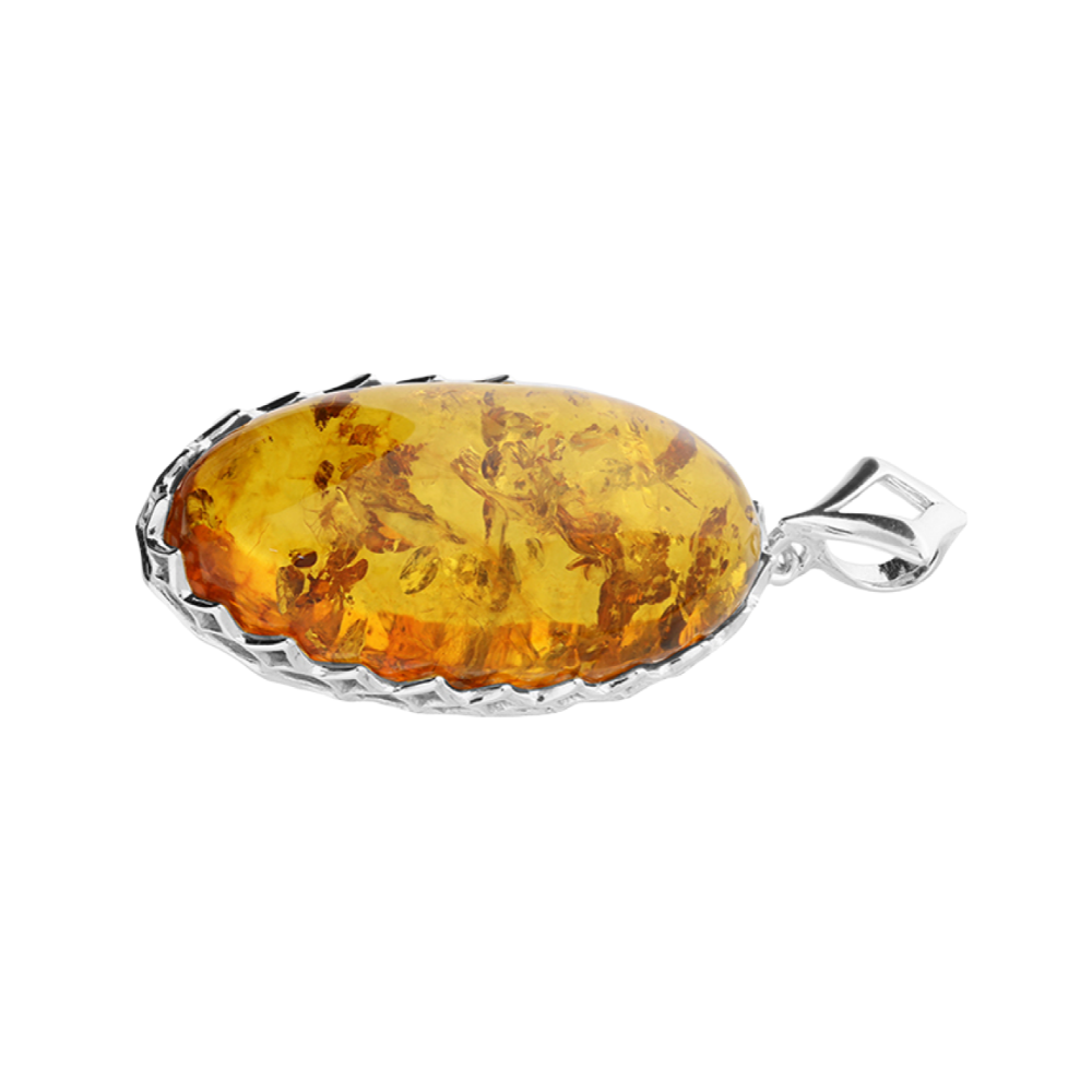 Cognac Amber Long Oval Drop in Crown Type Setting Pendant