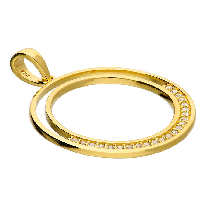 Yellow gold plated double circle with cubic zirconia in 925 sterling silver pendant. Navya London includes a variety of designs from everlasting classic pieces to those with a modern day twist. Our 925 sterling silver allows for comfortable wear, especially for those with sensitive skin. Our silver products are created by applying traditional processes to contemporary designs inspiration from around the world, ensuring high quality craftsmanship and materials without losing the edge. A perfect gift for yourself or that special person in your life. Your jewel is presented in a beautiful gift box.