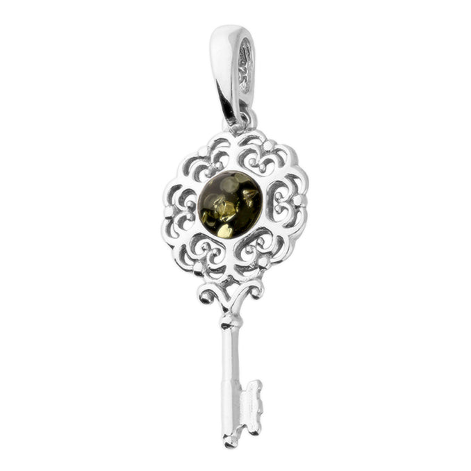 Fancy key in amber with sterling silver pendants. Navya London includes a variety of designs from everlasting classic pieces to those with a modern day twist. Our 925 sterling silver allows for comfortable wear, especially for those with sensitive skin. Our silver products are created by applying traditional processes to contemporary designs inspiration from around the world, ensuring high quality craftsmanship and materials without losing the edge. A perfect gift for yourself or that special person in your life. Your jewel is presented in a beautiful gift box.
