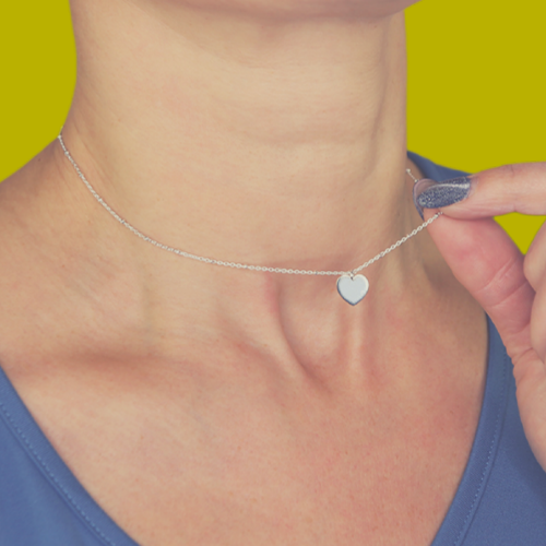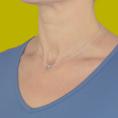 This silver necklace featuring a flat heart shaped pendant that is smooth and polished, making it suitable for engraving. The chain includes small bead details and measures 41cm in length with a 5cm extender, allowing for adjustable wear. Its elegant design makes it versatile for everyday use or special occasions in 925 sterling silver necklace.