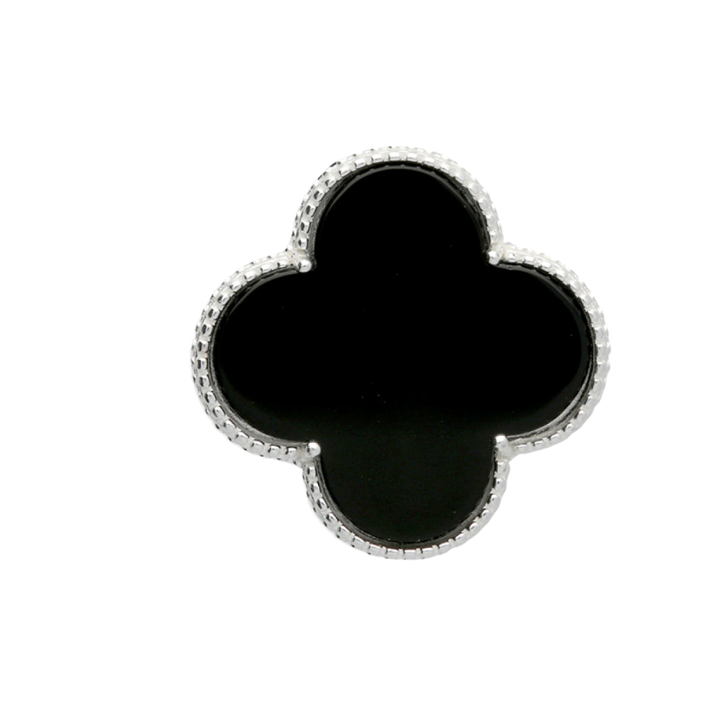 Large classic quatrefoil synthetic onyx with a beaded edge in 925 sterling silver pendant. Navya London includes a variety of designs from everlasting classic pieces to those with a modern day twist. Our 9ct, 925 sterling silver allows for comfortable wear, especially for those with sensitive skin. Our silver products are created by applying traditional processes to contemporary designs inspiration from around the world, ensuring high quality craftsmanship and materials without losing the edge. A perfect gift for yourself or that special person in your life. Your jewel is presented in a beautiful gift box.