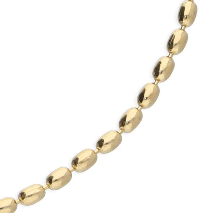 This yellow gold plated 23cm plus 2.5cm extender, Italian designed seed chain is crafted with tiny, polished, bead like links that resemble small seeds, creating a delicate refined look. Its minimalist style makes it versatile, perfect for layering or wearing alone for subtle elegance in 925 sterling silver.