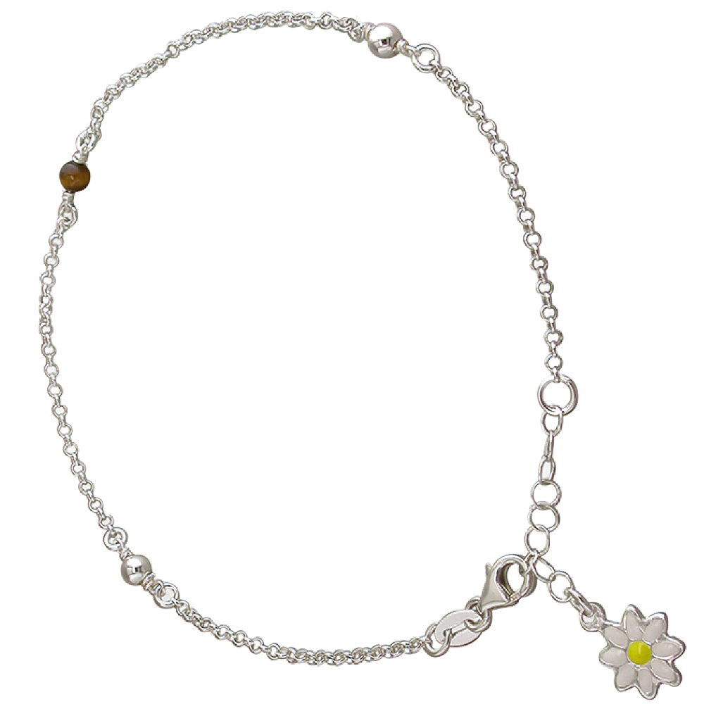 22.5cm plus 25cm long tigers eye and plain beads with enamel daisy drop in 925 sterling silver anklet. Navya London includes a variety of designs from everlasting classic pieces to those with a modern day twist. Our 925 sterling silver allows for comfortable wear, especially for those with sensitive skin. Our silver products are created by applying traditional processes to contemporary designs inspiration from around the world, ensuring high quality craftsmanship and materials without losing the edge. A perfect gift for yourself or that special person in your life. Your jewel is presented in a beautiful gift box.