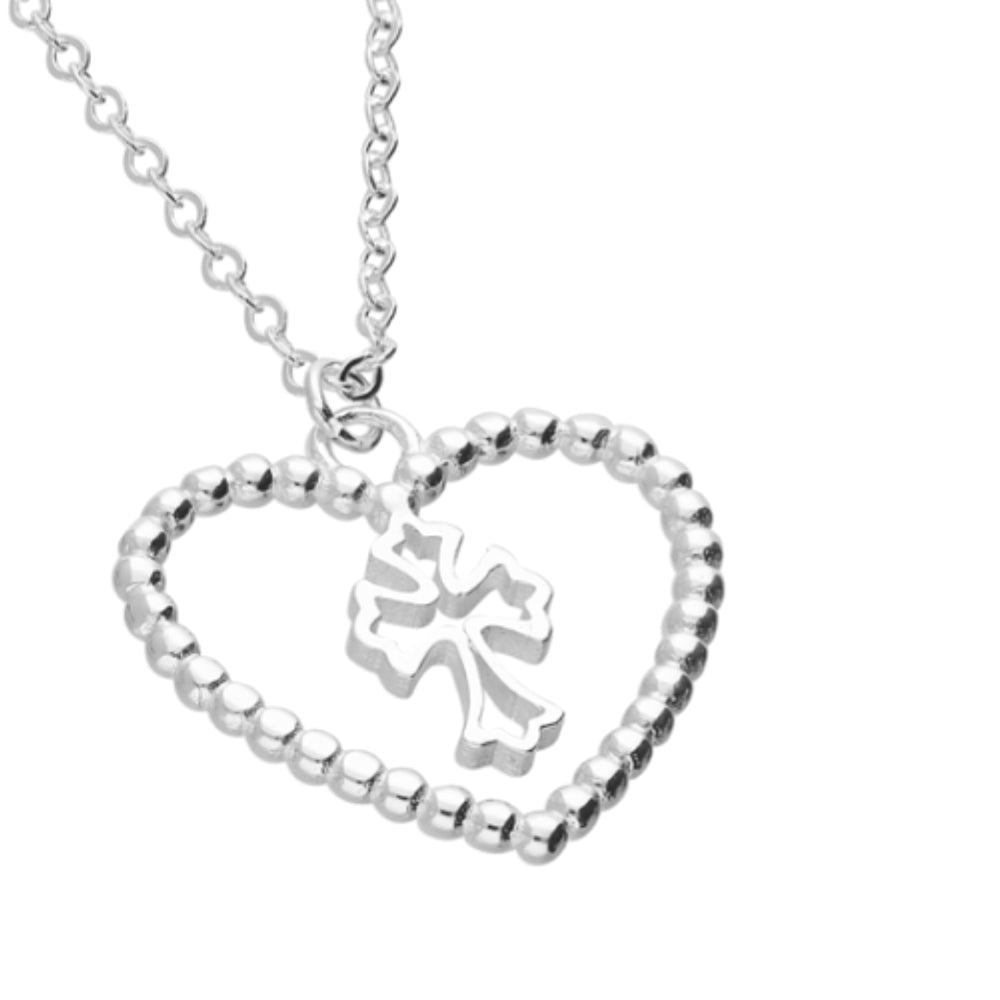 41cm to 46cm extender open beaded heart with a central fancy cross in 925 sterling silver necklace. Navya London includes a variety of designs from everlasting classic pieces to those with a modern day twist. Our 925 sterling silver allows for comfortable wear, especially for those with sensitive skin. Our silver products are created by applying traditional processes to contemporary designs inspiration from around the world, ensuring high quality craftsmanship and materials without losing the edge. A perfect gift for yourself or that special person in your life. Your jewel is presented in a beautiful gift box.