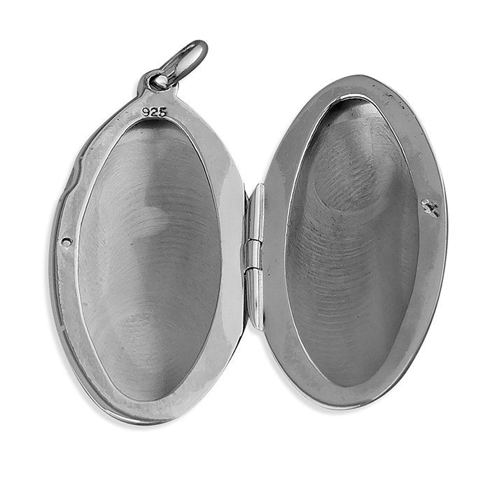 Plain pointed oval sterling silver locket. Navya London includes a variety of designs from everlasting classic pieces to those with a modern day twist. Our 925 sterling silver allows for comfortable wear, especially for those with sensitive skin. Our silver products are created by applying traditional processes to contemporary designs inspiration from around the world, ensuring high quality craftsmanship and materials without losing the edge. A perfect gift for yourself or that special person in your life. Your jewel is presented in a beautiful gift box.