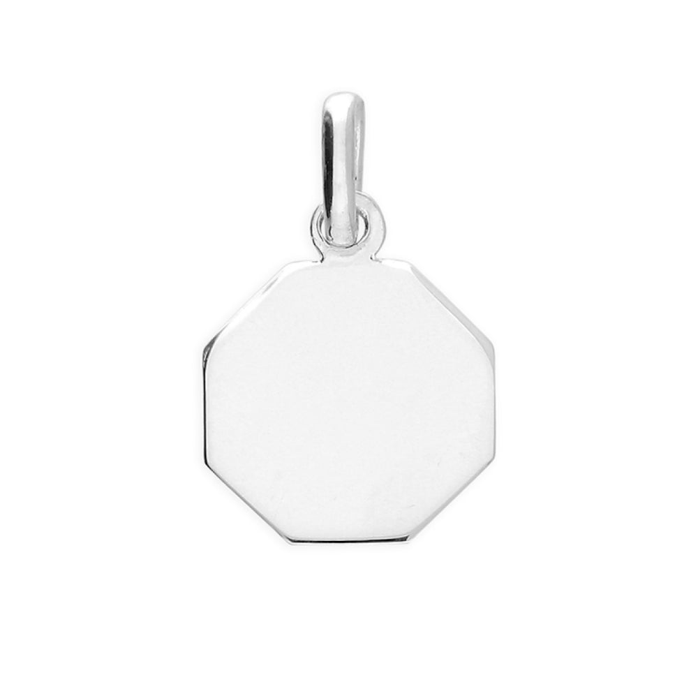 This silver St. Christopher pendant features an octagonal shape with a finely detailed engraving of the patron saint of travellers in 925 sterling silver pendant.