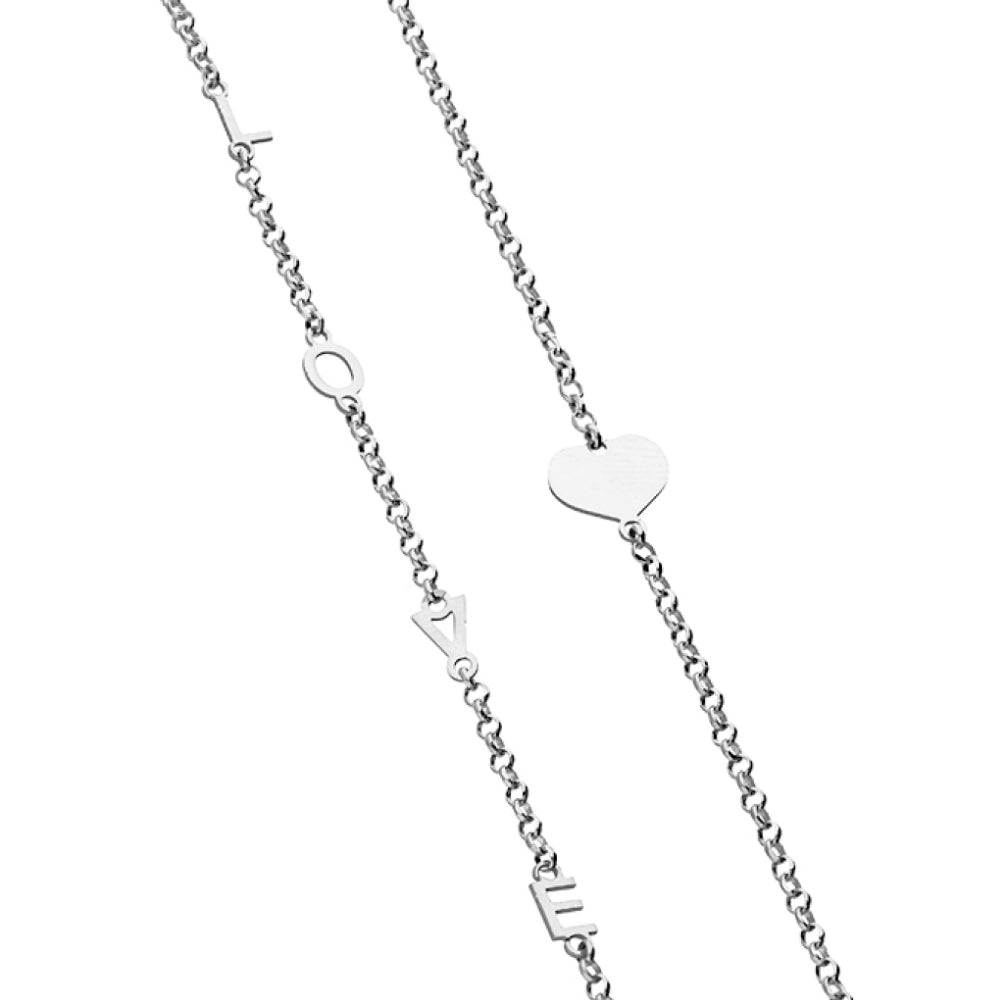 38cm with 5cm extender trace chain. Plain heart with LOVE wording in 925 sterling silver necklace. Navya London includes a variety of designs from everlasting classic pieces to those with a modern day twist. Our 9ct, 925 sterling silver allows for comfortable wear, especially for those with sensitive skin. Our silver products are created by applying traditional processes to contemporary designs inspiration from around the world, ensuring high quality craftsmanship and materials without losing the edge. A perfect gift for yourself or that special person in your life. Your jewel is presented in a beautiful gift box.