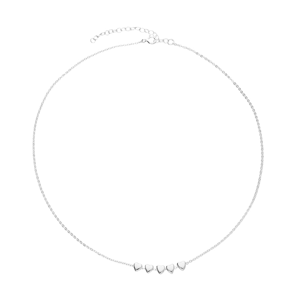 38-43cm (15+2inch extender) necklace featuring five threaded, polished hearts on a diamond cut trace chain in 925 sterling silver. Navya London includes a variety of designs from everlasting classic pieces to those with a modern day twist. Our 9ct, 925 sterling silver allows for comfortable wear, especially for those with sensitive skin. Our silver products are created by applying traditional processes to contemporary designs inspiration from around the world, ensuring high quality craftsmanship and materials without losing the edge. A perfect gift for yourself or that special person in your life. Your jewel is presented in a beautiful gift box.