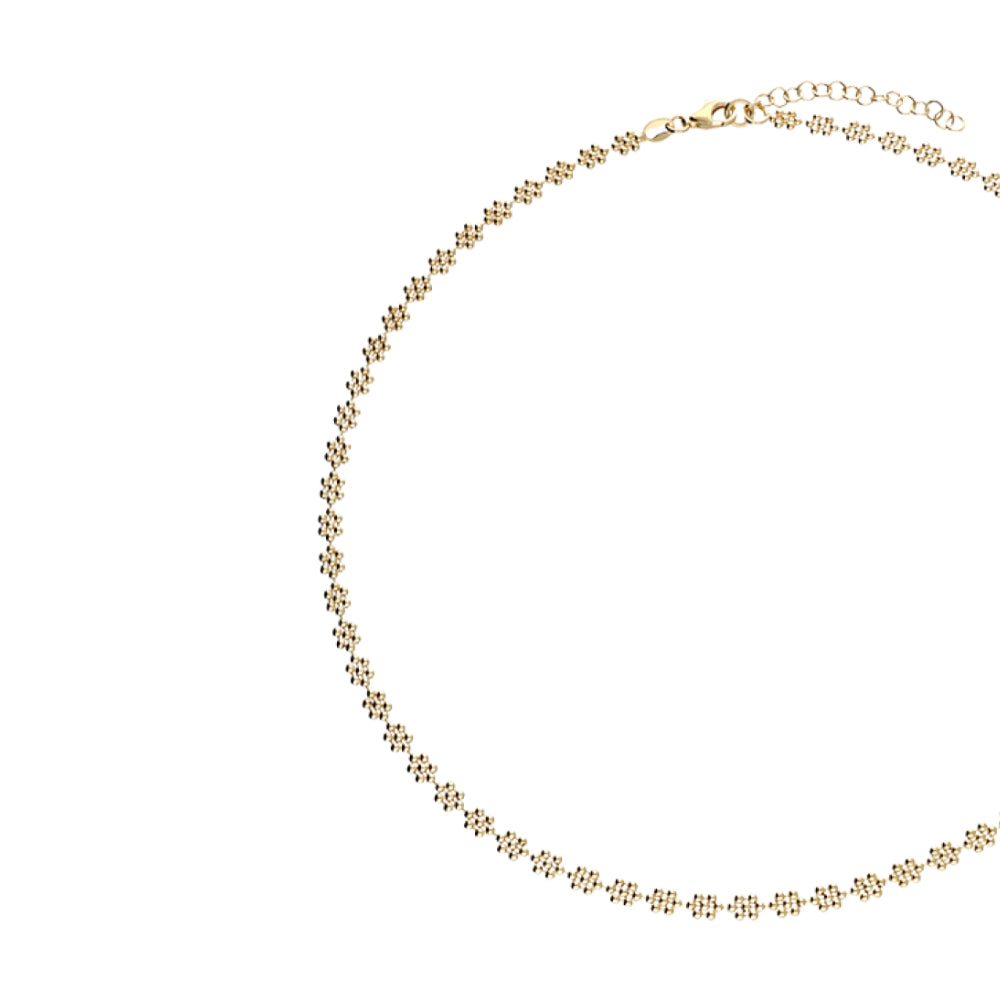 40 plus 4cm extender yellow gold plated beaded flower chain in 925 sterling silver necklace. Navya London includes a variety of designs from everlasting classic pieces to those with a modern day twist. Our 9ct gold allows for comfortable wear, especially for those with sensitive skin. Our gold products are created by applying traditional processes to contemporary designs inspiration from around the world, ensuring high quality craftsmanship and materials without losing the edge. A perfect gift for yourself or that special person in your life. Your jewel is presented in a beautiful gift box.