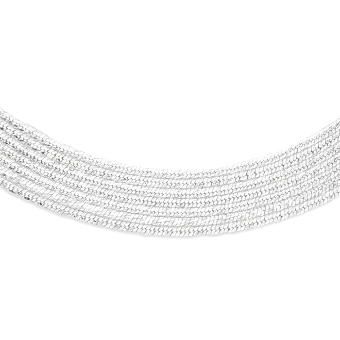 Seven beautifully strand diamond cut snake sterling silver necklace. Navya London includes a variety of designs from everlasting classic pieces to those with a modern day twist. Our 925 sterling silver allows for comfortable wear, especially for those with sensitive skin. Our silver products are created by applying traditional processes to contemporary designs inspiration from around the world, ensuring high quality craftsmanship and materials without losing the edge. A perfect gift for yourself or that special person in your life. Your jewel is presented in a beautiful gift box.