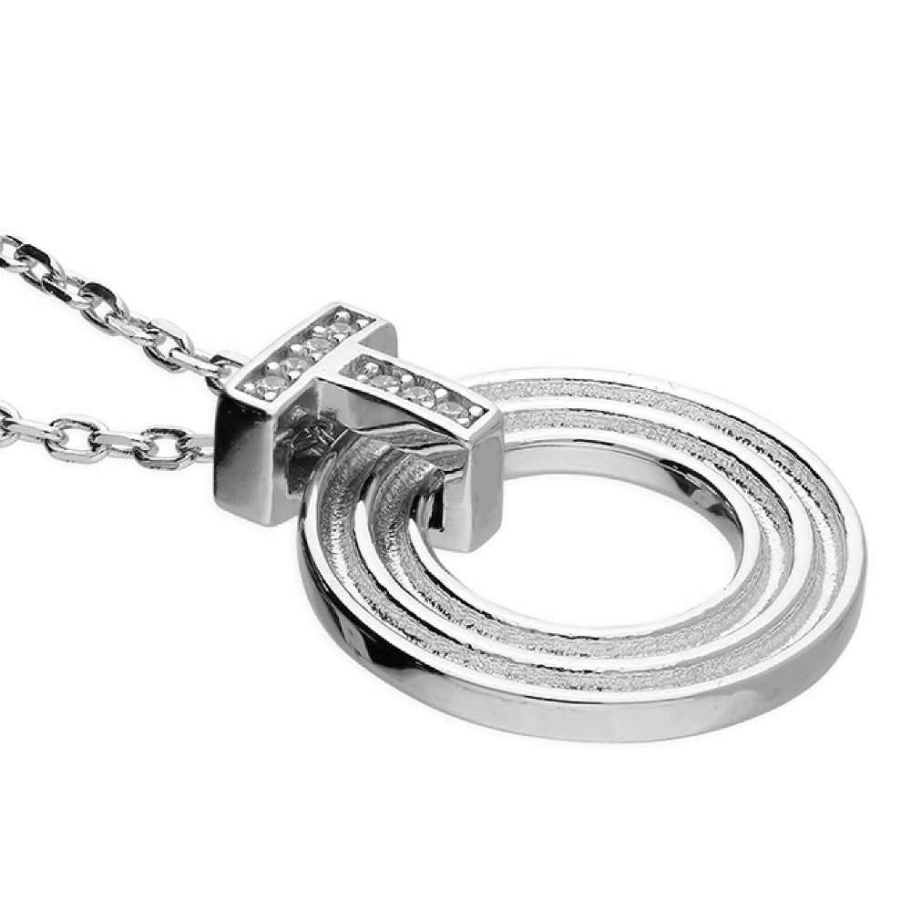 This rhodium plated cubic zirconia necklace features a sophisticated open circle design with a sparkling pave set top bar, creating a bold yet elegant look in 925 sterling silver necklace. Navya London isn’t just jewellery it’s a statement. From timeless classics to modern silhouettes with an edge, our pieces are designed for those who don’t follow trends they set them.