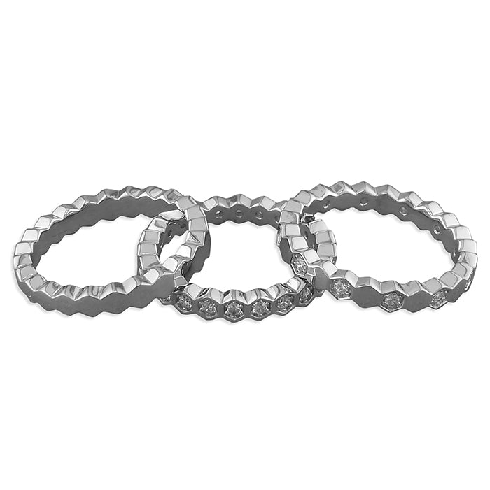 Cubic zirconia triple half eternity stacker sterling silver ring. Navya London includes a variety of designs from everlasting classic pieces to those with a modern day twist. Our 925 sterling silver allows for comfortable wear, especially for those with sensitive skin. Our silver products are created by applying traditional processes to contemporary designs inspiration from around the world, ensuring high quality craftsmanship and materials without losing the edge. A perfect gift for yourself or that special person in your life. Your jewel is presented in a beautiful gift box.