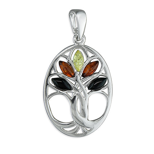 Oval mixed amber 'Tree of Life' in sterling silver pendants. Navya London includes a variety of designs from everlasting classic pieces to those with a modern day twist. Our 925 sterling silver allows for comfortable wear, especially for those with sensitive skin. Our silver products are created by applying traditional processes to contemporary designs inspiration from around the world, ensuring high quality craftsmanship and materials without losing the edge. A perfect gift for yourself or that special person in your life. Your jewel is presented in a beautiful gift box.