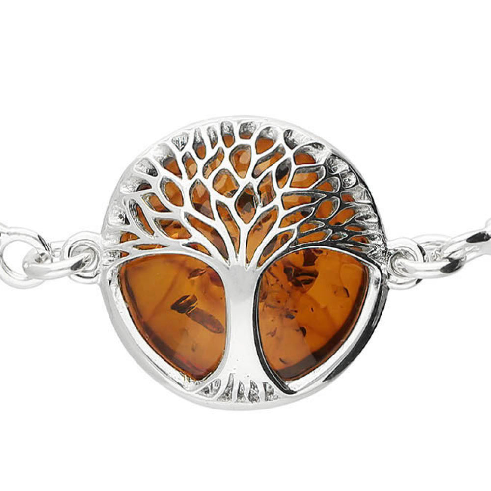 Cognac amber tree of life slider in 925 sterling silver bracelet. Navya London includes a variety of designs from everlasting classic pieces to those with a modern day twist. Our 925 sterling silver allows for comfortable wear, especially for those with sensitive skin. Our silver products are created by applying traditional processes to contemporary designs inspiration from around the world, ensuring high quality craftsmanship and materials without losing the edge. A perfect gift for yourself or that special person in your life. Your jewel is presented in a beautiful gift box.