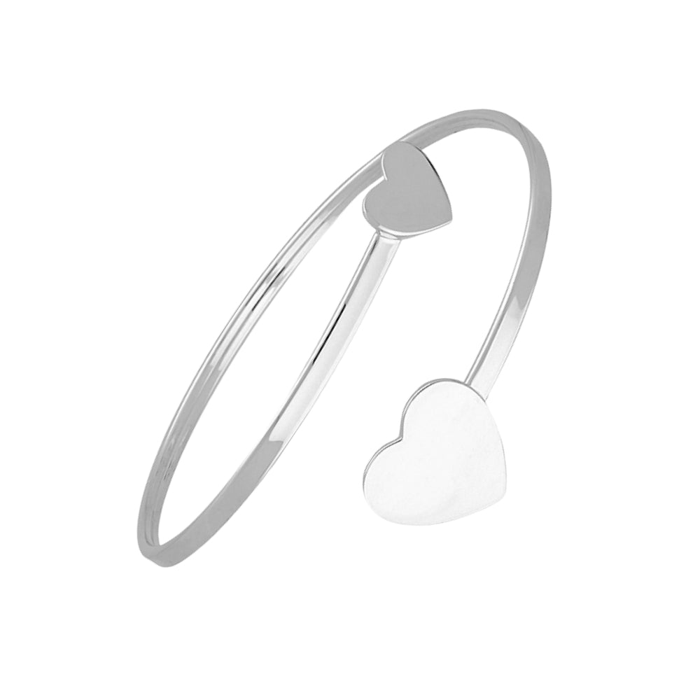 60mm big double flat heart hollow crossover in 925 sterling silver bangle. Navya London includes a variety of designs from everlasting classic pieces to those with a modern day twist. Our 925 sterling silver allows for comfortable wear, especially for those with sensitive skin. Our silver products are created by applying traditional processes to contemporary designs inspiration from around the world, ensuring high quality craftsmanship and materials without losing the edge. A perfect gift for yourself or that special person in your life. Your jewel is presented in a beautiful gift box.