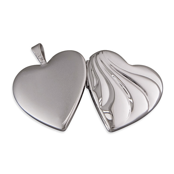 20mm rhodium plated heart with embossed wave pattern sterling silver locket. Navya London includes a variety of designs from everlasting classic pieces to those with a modern day twist. Our 925 sterling silver allows for comfortable wear, especially for those with sensitive skin. Our silver products are created by applying traditional processes to contemporary designs inspiration from around the world, ensuring high quality craftsmanship and materials without losing the edge. A perfect gift for yourself or that special person in your life. Your jewel is presented in a beautiful gift box.