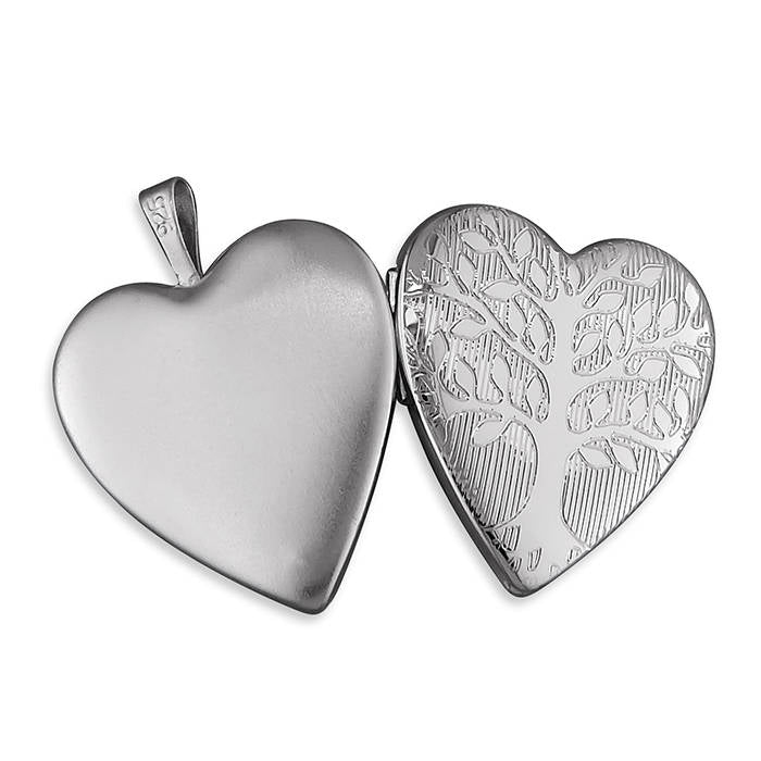 20mm rhodium plated heart with Tree of Life pattern sterling silver locket.