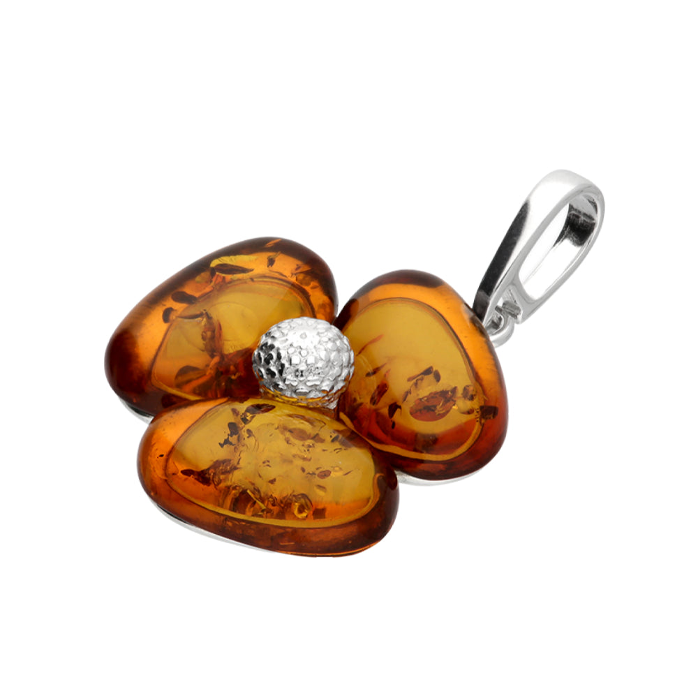 Baltic amber cognac poppy in 925 sterling silver pendant. Navya London includes a variety of designs from everlasting classic pieces to those with a modern day twist. Our 925 sterling silver allows for comfortable wear, especially for those with sensitive skin. Our silver products are created by applying traditional processes to contemporary designs inspiration from around the world, ensuring high quality craftsmanship and materials without losing the edge. A perfect gift for yourself or that special person in your life. Your jewel is presented in a beautiful gift box.