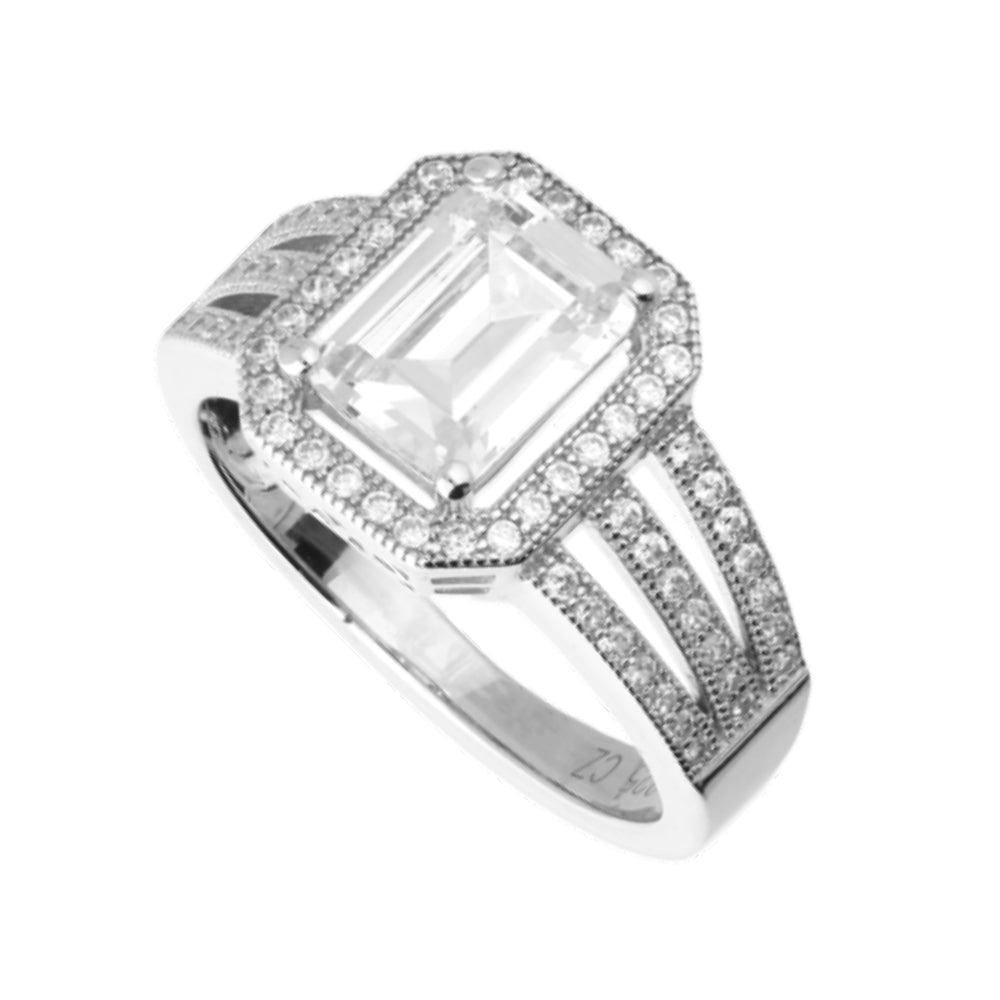 Vintage Style Rectangular Emerald Cut Cubic Zirconia with Split Shank
