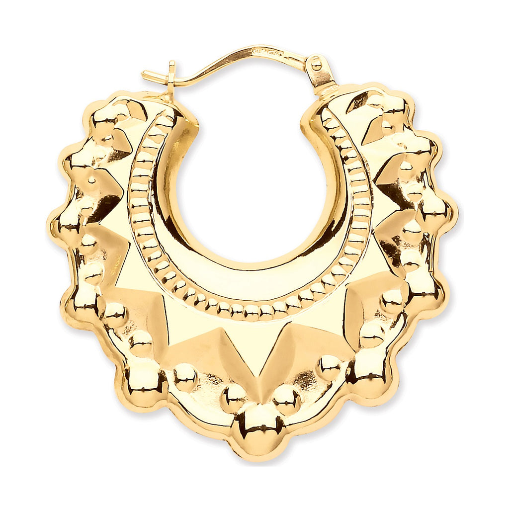 Traditional creoles earrings in 9ct gold. Navya London includes a variety of designs from everlasting classic pieces to those with a modern day twist. Our 925 sterling silver allows for comfortable wear, especially for those with sensitive skin. Our silver products are created by applying traditional processes to contemporary designs inspiration from around the world, ensuring high quality craftsmanship and materials without losing the edge. A perfect gift for yourself or that special person in your life. Your jewel is presented in a beautiful gift box.