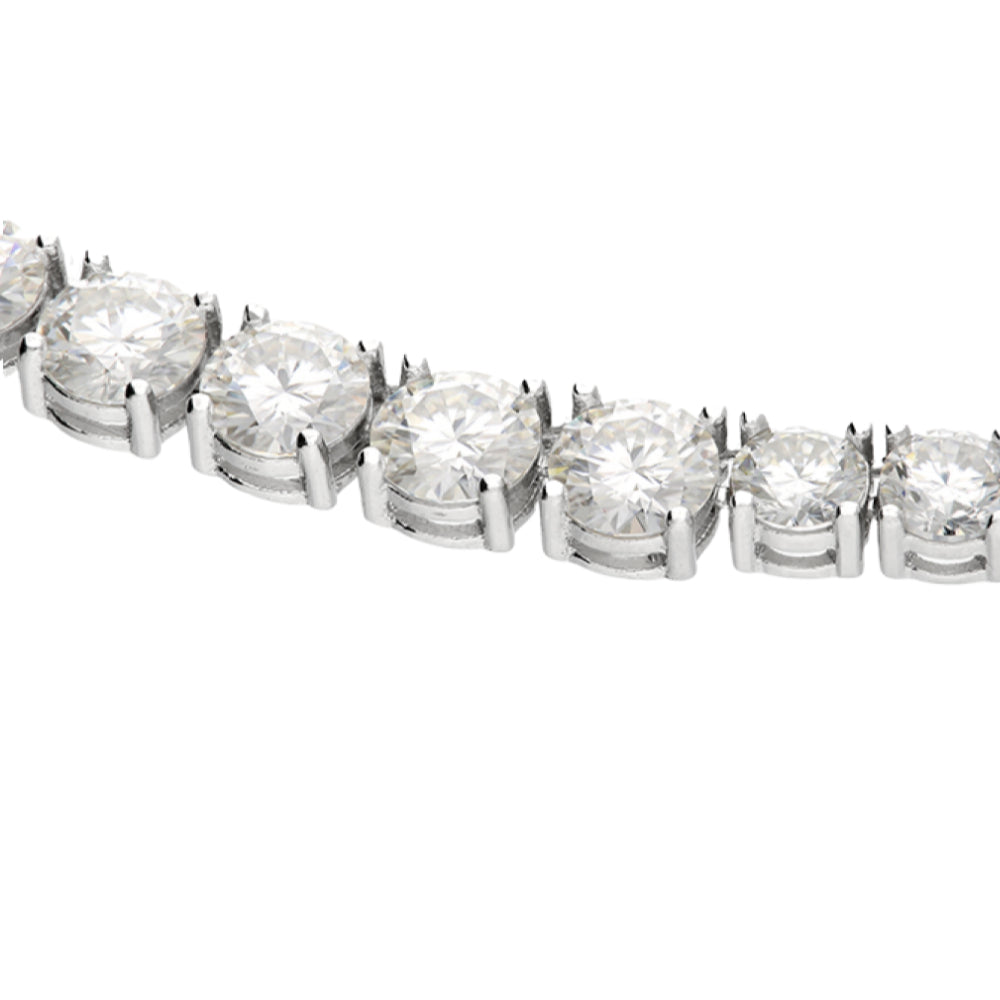 This stunning 19cm long moissanite tennis bracelet in GH colour features a single row of uniformly cut moissanite stones set in a continuous line, creating a sleek and elegant design. Navya London includes a variety of designs from everlasting classic pieces to those with a modern day twist. Our 925 sterling silver allows for comfortable wear, especially for those with sensitive skin. Our silver products are created by applying traditional processes to contemporary designs inspiration from around the world, ensuring high quality craftsmanship and materials without losing the edge. A perfect gift for yourself or that special person in your life. Your jewel is presented in a beautiful gift box.