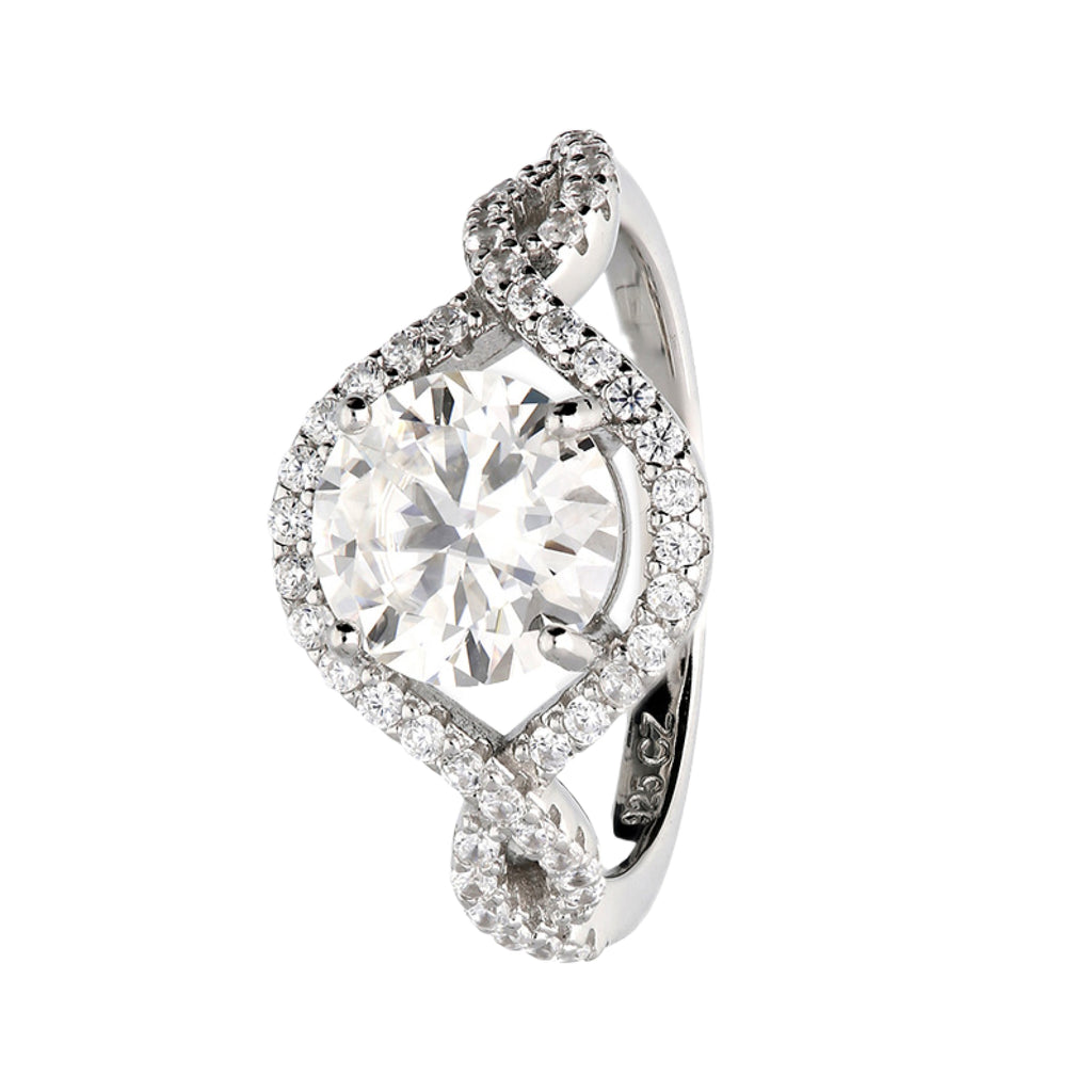 Moissanite with White Cubic Zirconia Accents Open Twist Halo Ring