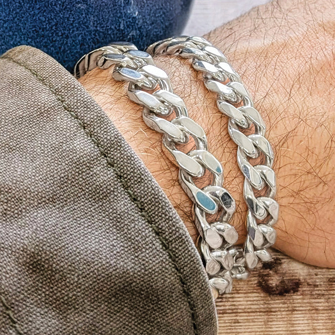 Bold and Durable Lightweight Diamond Cut Silver Curb with a Classic Interlocking