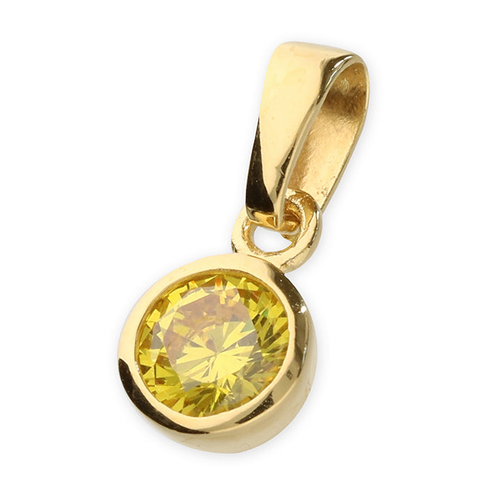 Gold plated rub over cubic zirconia birthstone sterling silver pendant. Navya London includes a variety of designs from everlasting classic pieces to those with a modern day twist. Our 925 sterling silver allows for comfortable wear, especially for those with sensitive skin. Our silver products are created by applying traditional processes to contemporary designs inspiration from around the world, ensuring high quality craftsmanship and materials without losing the edge. A perfect gift for yourself or that special person in your life. Your jewel is presented in a beautiful gift box.